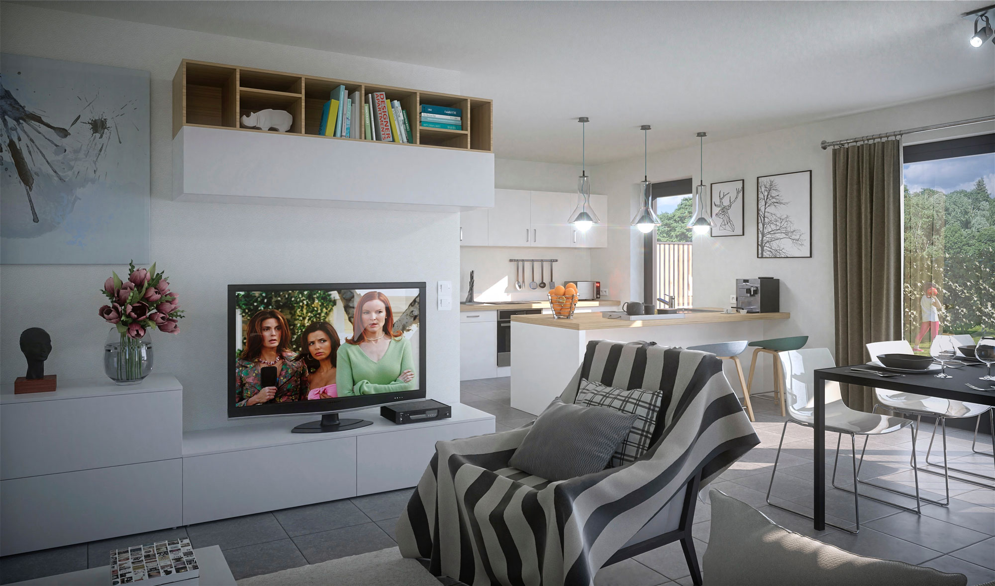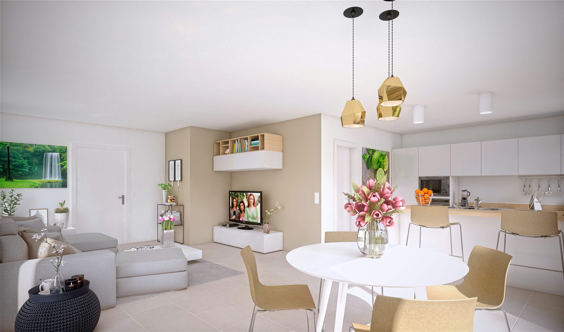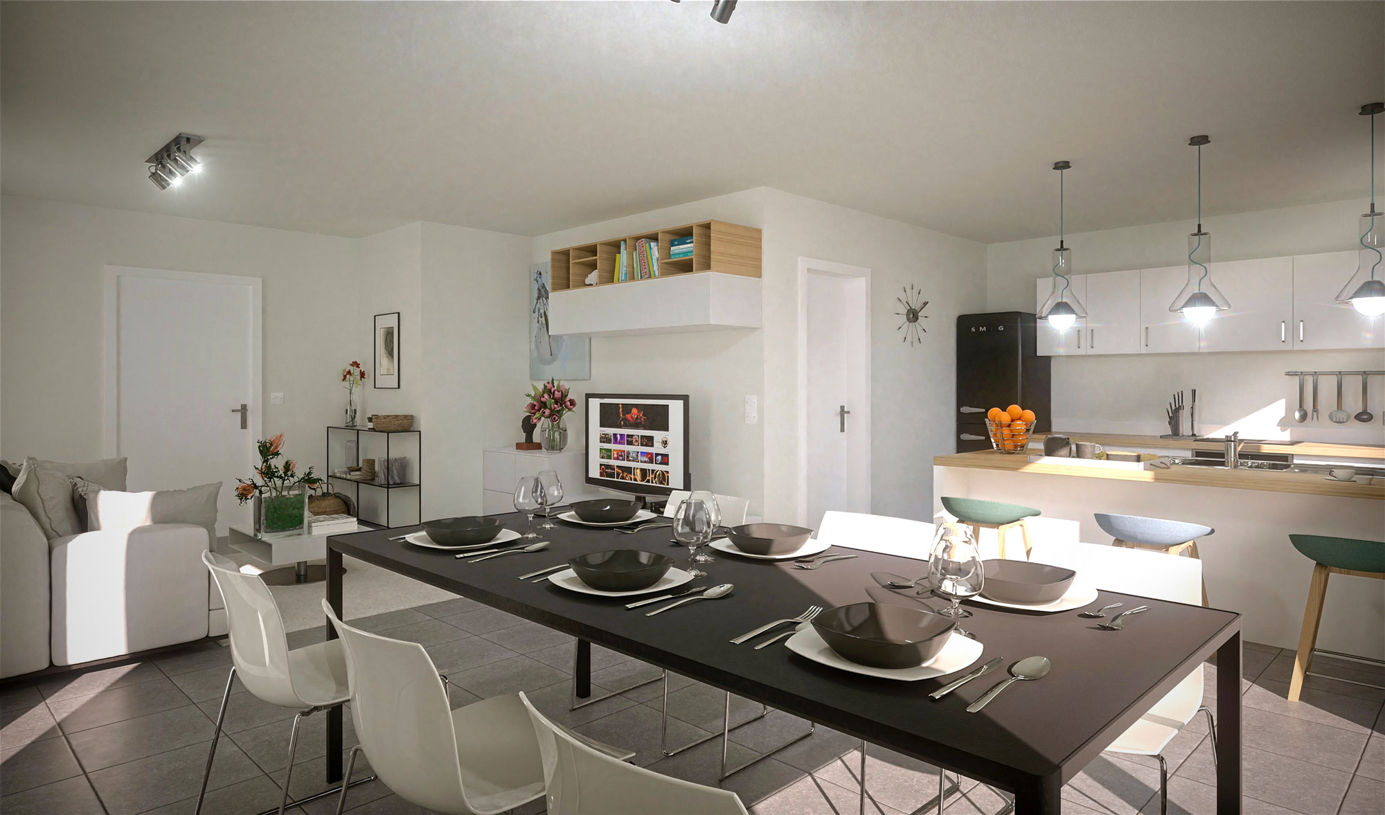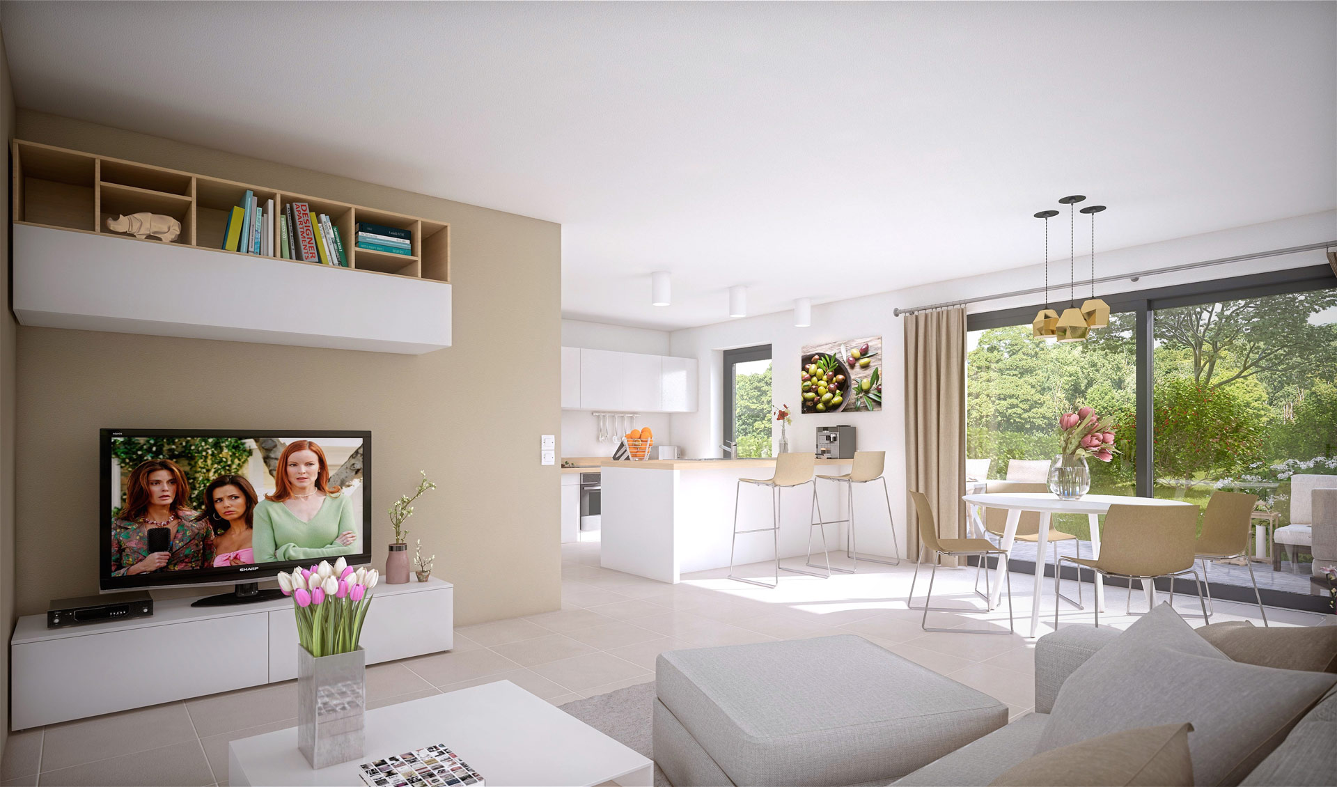 Chacune des maisons est conçue avec un rez-de-chaussée spacieux et lumineux, comprenant un salon et une salle à manger avec une vue sur l’extérieur, ainsi qu’un espace cuisine et un garage. Les points forts sont :