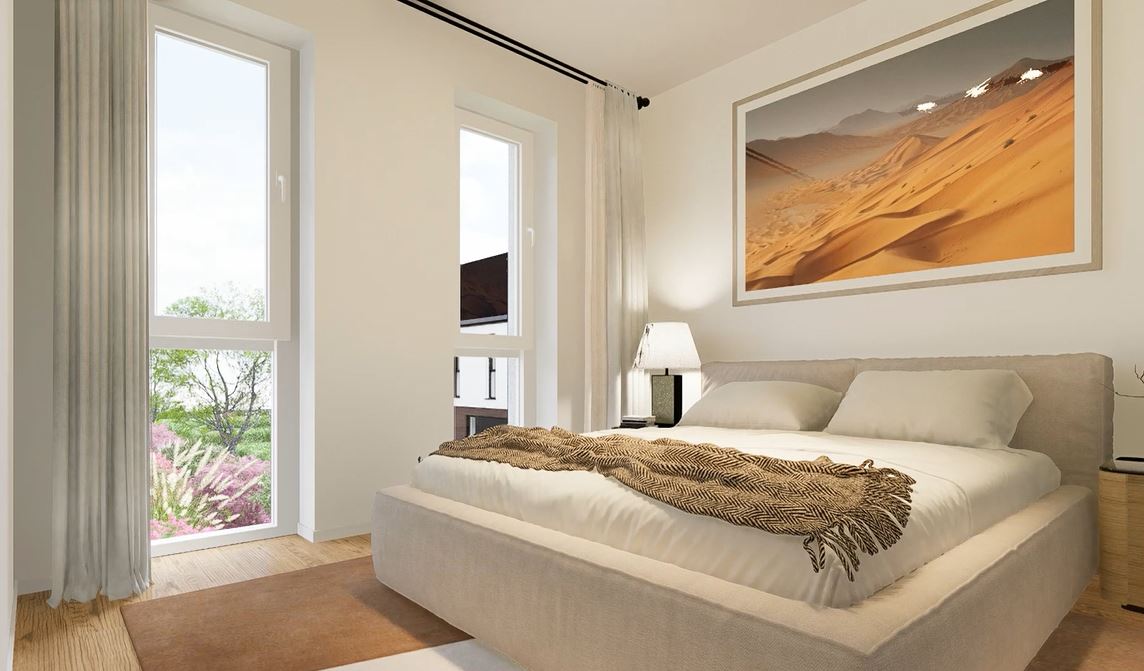 La partie nuit se compose de 2/3 chambres, dont l’une bénéficie d’un dressing, et d’une salle de bains équipée d’une baignoire et d’une douche. Chaque unité bénéficie également de 2 places de parking extérieures, garantissant un confort optimal et une qualité de vie au quotidien.